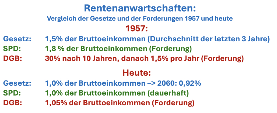 Gegenüber dem Gesetz und den Forderungen aus dem Jahr 1957 wirken die heutigen Positionen zu den jährlichen Anwartschaftssteigerungen geradezu grotesk, wenn nicht lächerlich: